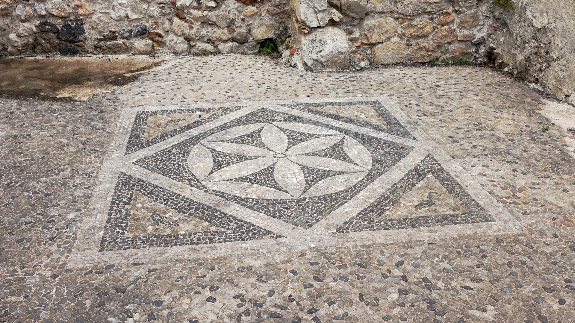 Das Mosaik ist zum Teil ummauert und kann durch ein Gitter angesehen werden. Die Stelle kann jederzeit besichtigt werden.