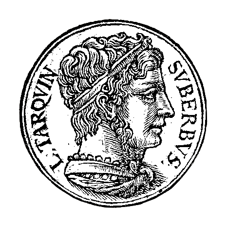 (7) Portrait von Tarquinius Superbus, des siebten und letzten Königs von Rom, aus dem Promptuarium Iconum Insigniorum von Guillaume Rouillé (1553). Gemeinfrei